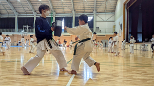 ジュニア強化は「組手基本」「打ちこみ」の練習をし