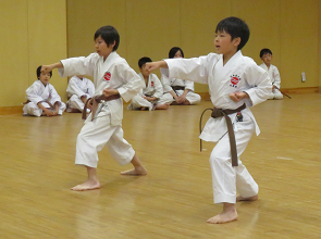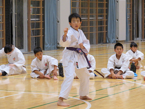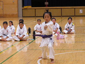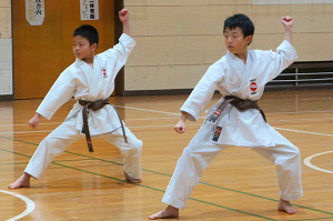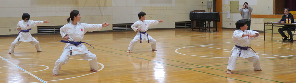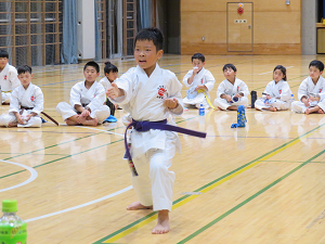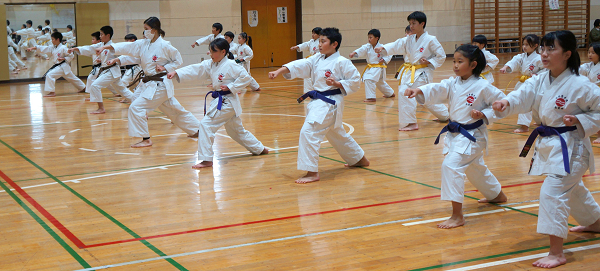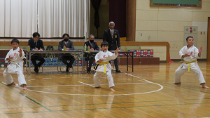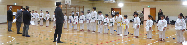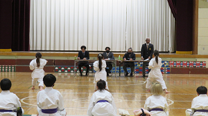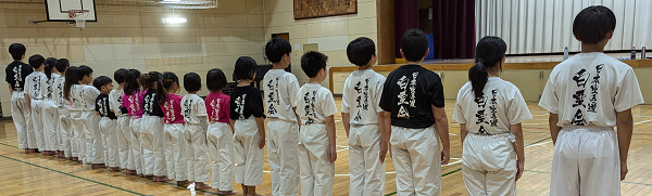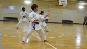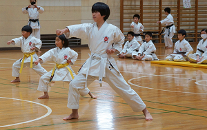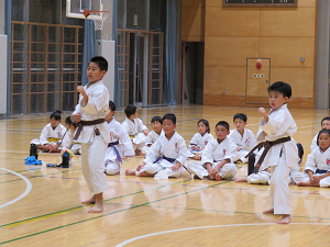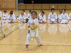 小学校体育館で行いました。22名が昇級審査を受けました。