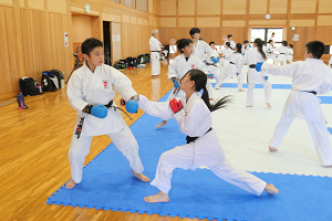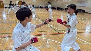 ジュニア強化は「組手基本」「打ちこみ」の練習をし