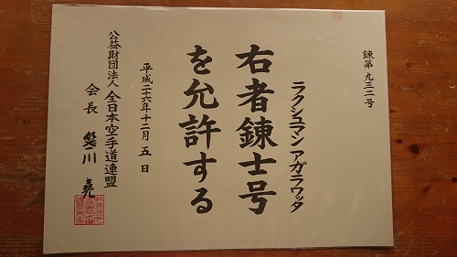 1996年11月24日第17回埼玉県大会出場 1996年12月15日全空連二段取得